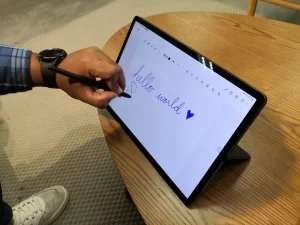 ปากกา S Pen ที่แถมมาให้ในกล่องเป็นอุปกรณ์ที่ใช้งานได้ง่ายและน่าใช้มาก การจดบันทึกและวาดภาพบน Tab S9+ ให้ความรู้สึกไม่ต่างจากการเขียนบนกระดาษเลย
